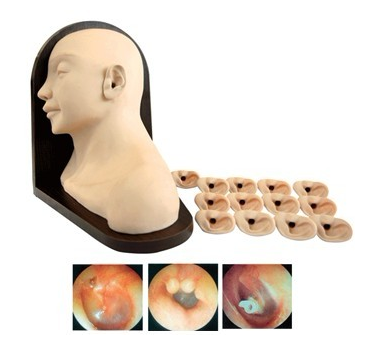 本产品是一款用于训练耳内检查及治疗操作的多功能模型。模型精确地模拟了外耳及中耳的结构,可通过简单的拆卸安装模拟不同病症的耳。模型仿照真人大小制作,通过更换含有彩色